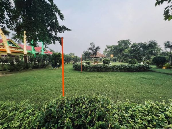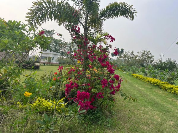 Beautiful ambience; multiple, well maintained lawns, large ground; badminton court; cooking space; parking space; free space for long walks, jogging and cycling; place for yoga and meditation.